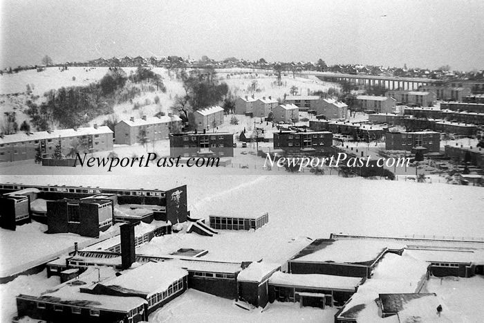 St Julians in the snow of 1982, the Junior School in the foreground. Looking towards Munnings Drive from top of the Greenwood Tower Block. Photo Ron Sutcliffe.
