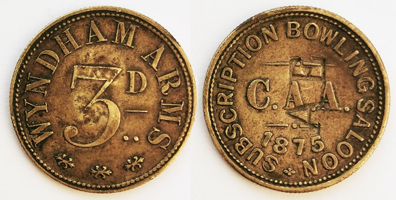 Subscription Bowling Saloon C.A.A. 1875 c/m AE.
